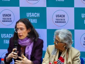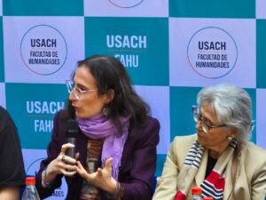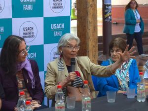Uno de los hitos de la jornada fue el conversatorio “Heridas que hablan: memoria, trauma y resiliencia en la defensa de los derechos humanos”, moderado por el periodista Alejandro Guillier y la académica Eugenia Do Santos, con la participación de representantes de la Vicaría de la Solidaridad, La Morada, ONG CERES, Juventudes Palestinas y FEUSACH.