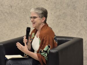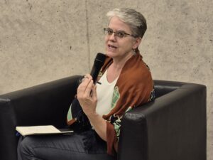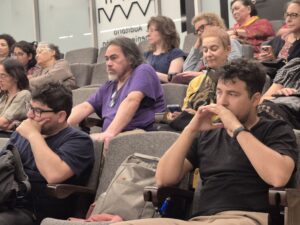 Rosario Fernández, filósofa y académica del Departamento de Filosofía de la Universidad de Chile, se refirió al aporte político y narrativo del libro: “Recoge la historia de movilizaciones, alianzas y estrategias de mujeres de sectores populares. Es muy significativo presentarlo aquí, en un espacio que abre al diálogo y a nuevas formas de contar estas historias.”